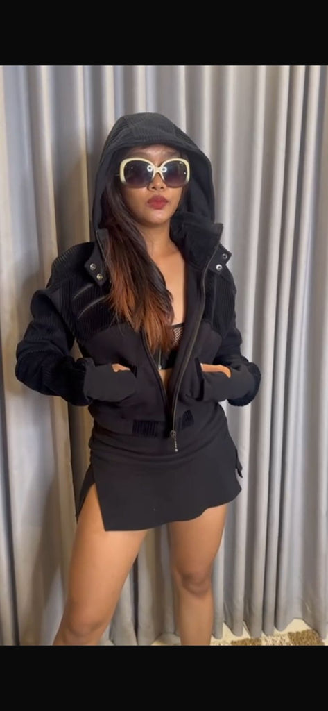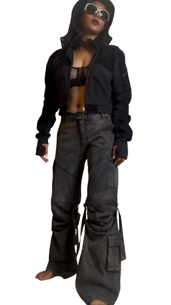 Hive Crop Hoodie — Originally designed for men and reimagined for women, the Hive Crop Hoodie carries that effortless “borrowed from my boyfriend” vibe with a bold, feminine twist. Cut short for a sexier cropped fit, it combines comfort and style with soft poly fleece, corduroy paneling, and a spacious hood for a cozy, street-ready look. Featuring two front hand pockets and three zipper pockets for a touch of utility, this mixed-fabric hoodie is both stylish and laid-back—perfect for layering, lounging, or stepping out in Buddhaful style.